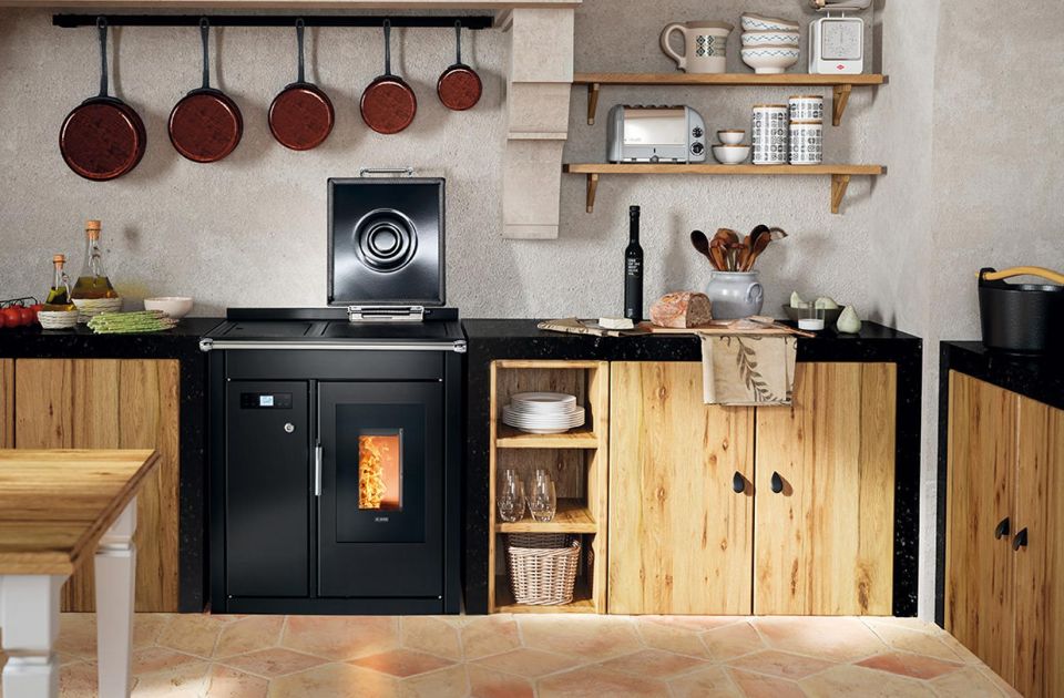 La termocucina è un sistema bivalente per il riscaldamento domestico e per la cottura dei cibi in alternativa o semplicemente affiancato agli impianti tradizionali (gasolio, GPL, metano), con il vantaggio di offrire risparmio economico e tutela ambientale. Con la semplice immissione di legna da ardere, il sistema contribuisce al riscaldamento della casa (impianto di riscaldamento a radiatori o a pavimento) e al contempo permette la cottura dei cibi attraverso la piastra e il forno riscaldati dalla fiamma e dal calore dei fumi prodotti. A differenza della termocucina, la cucina a legna viene utilizzata solo per la cottura dei cibi e il riscaldamento del locale dato dal calore irraggiato dalla piastra cottura e dal resto della struttura.