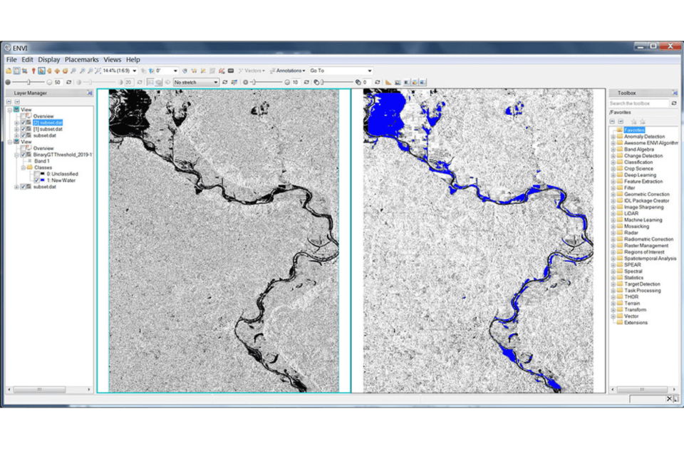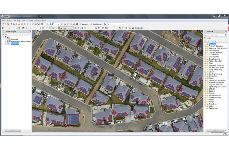 ENVI, il prodotto dedicato al processamento dei dati telerilevati, con i suoi moduli, lavora con tutti i tipi di dati utilizzati nel campo delle geo-informazioni. I dati raccolti da UAV e droni possono essere integrati in ENVI facilmente grazie ad OpticalScape. ENVI Modeler permette di costruire processi e workflow a blocchi, permettendo di creare procedure automatiche per processare dati ottici e SAR. Con ENVI Deep Learning la classificazione con tecniche di machine learning si aggiunge e completa la suite di funzionalità per estrarre informazioni dai dati, permettendo di elaborare big data in modo veloce e automatico.
