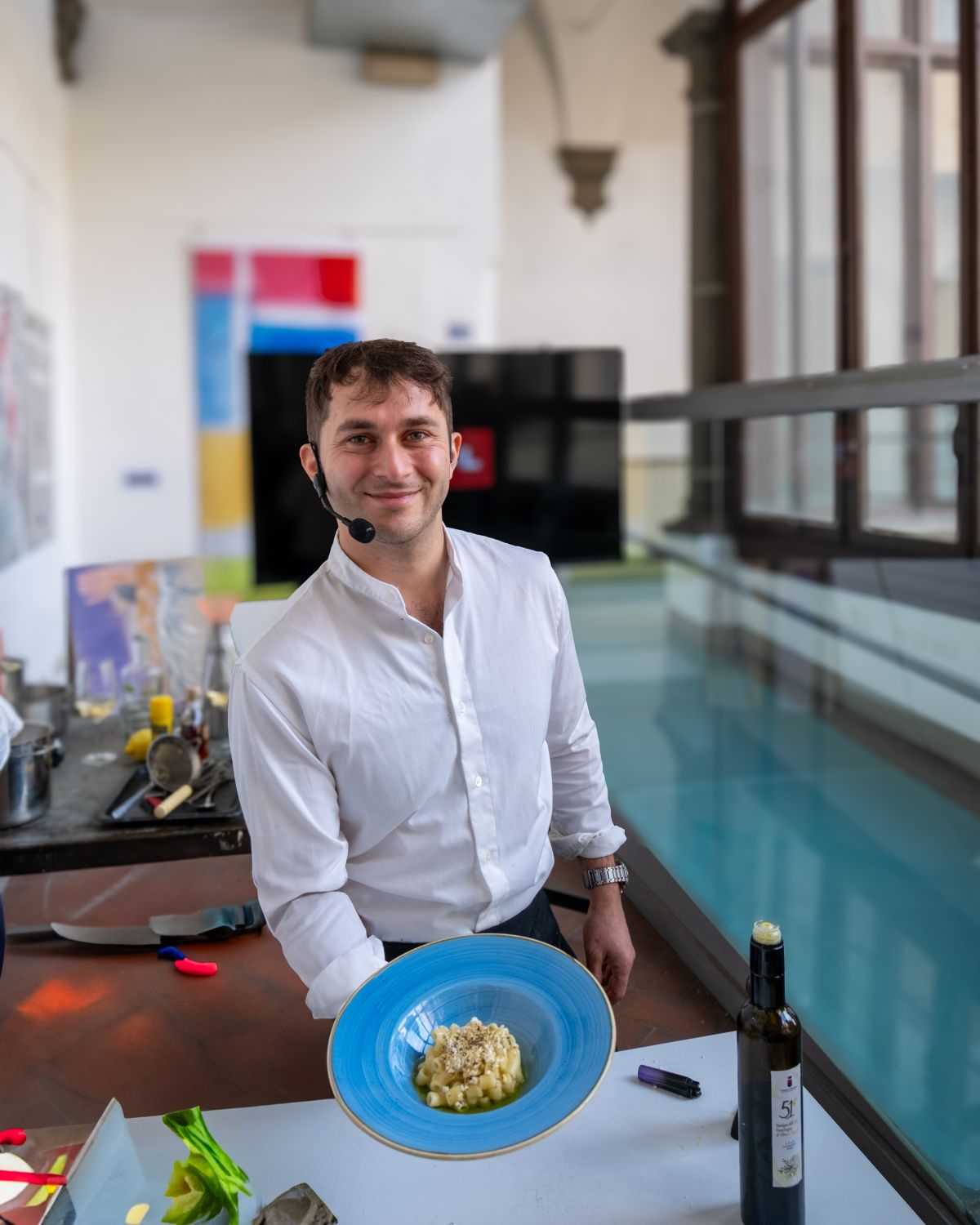 A conferma dell’eccellente qualità dell’olio evo di Reggello i piatti preparati per l’occasione dallo chef OmarDhib, due preparazioni: una pasta (mezzo ditale) in acqua di Parmigiano, polvere di olio bruciato e foglie di ulivo e un merluzzo in olio cottura, emulsione all’olio extra vergine di oliva di Reggello e polvere di pomodoro.