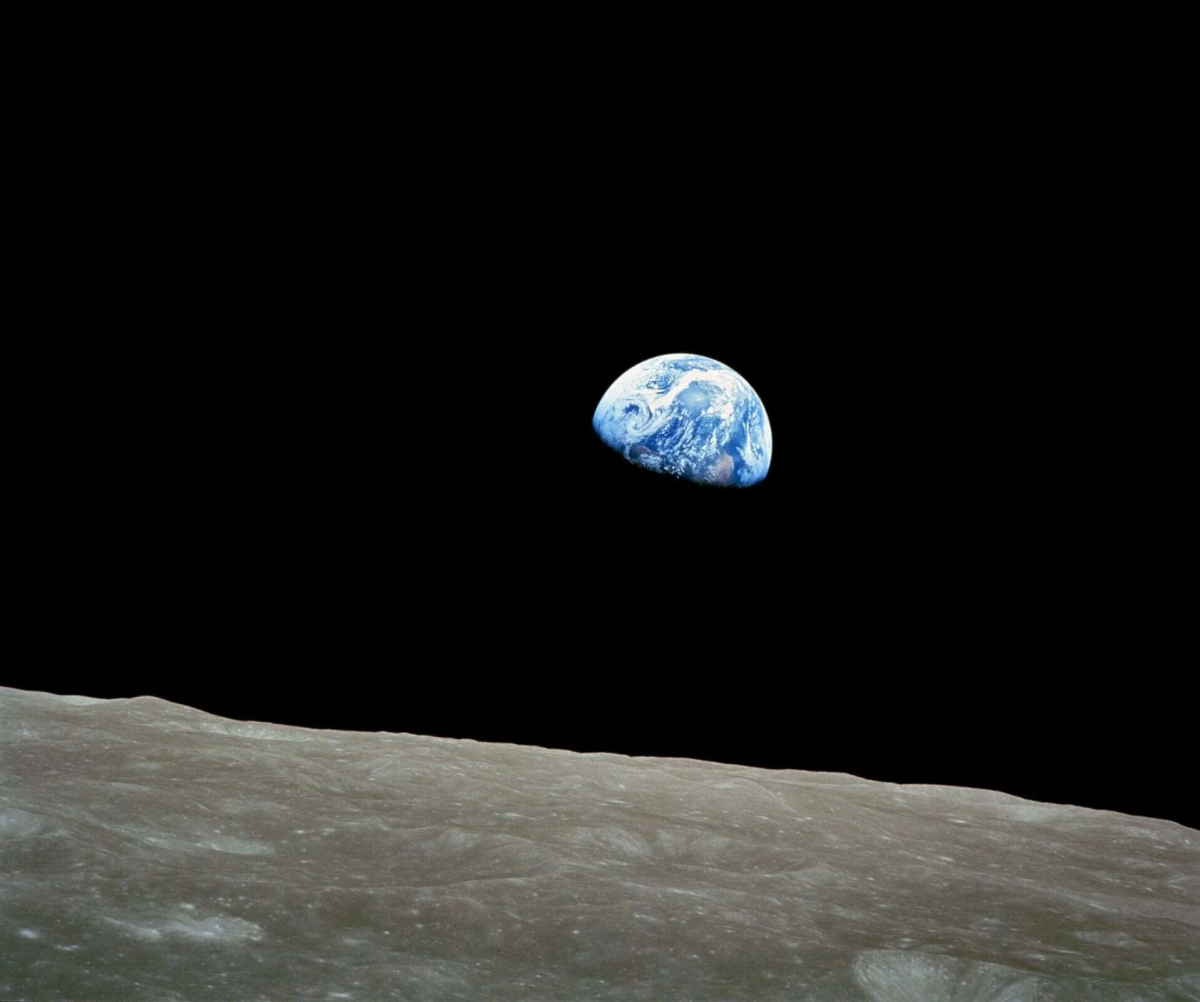 Possiamo solo immaginare le straripanti emozioni degli astronauti statunitensi, i primi a vederla sorgere dalla Luna. Era il 24 dicembre del 1968. Quel giorno, Frank Borman, Jim Lovell e Bill Anders fecero al mondo il più bel regalo di Natale. Anders, che la osservava dal sedile di destra dall’oblò del modulo di comando dell’Apollo 8 in orbita intorno alla Luna, scattò la foto con la fotocamera Hasselblad con teleobiettivo da 250 mm. Riprendeva il nostro Pianeta come nessuno lo aveva mai visto. La trascrizione delle voci emozionate dei tre cosmonauti raccontano quegli attimi di infinito stupore: